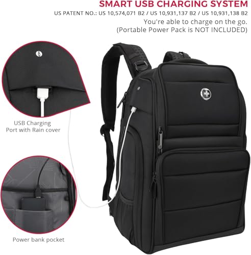 Swissdigital Design Fits 15.6 inch Large Laptop Backpack for Men and Women, Computer Bag with USB Charging Port and Vibrating Massager for Business/Travel/Commute Daily, Black | SENSOR 4