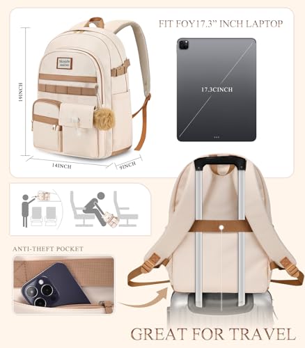 17.3 inch laptop backpack for women, Girls Backpack for School, Cute backpack for girls teens, School bookbag for Girls Teens college Students,school bag mochilas escolares para niñas, Bookbag Beige 1
