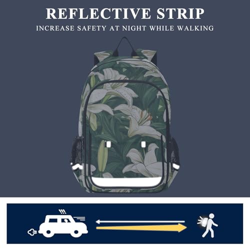 ALAZA Lily Floral Flowers and Leaves School Backpacks Reflective Safety Backpack 3