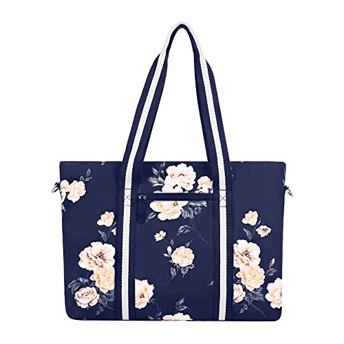 MOSISO Laptop Tote Bag for Women (17-17.3 inch), Canvas Camellia Multifunctional Work Travel Shopping Duffel Carrying Shoulder Handbag, Blue 1