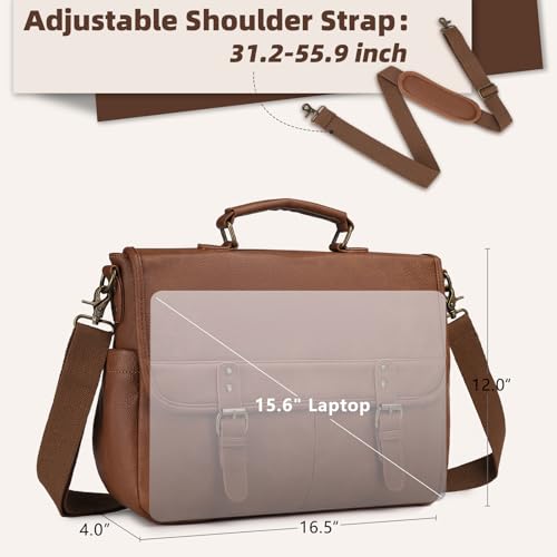 Leather Messenger Bag for Men, 15.6 Inch Laptop Briefcase Large Computer Satchel Shoulder Bag for Work/Business/Travel 6