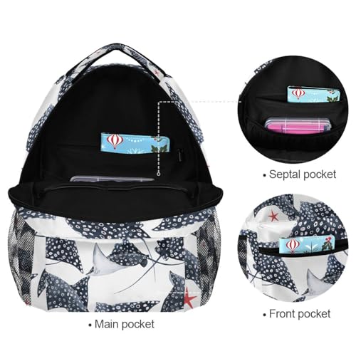 Watercolor Stingray Fish Pattern Boys Girls Kids School Backpacks Bookbag, School Bag Travel Backpack Daypack 5
