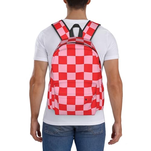 HOT ! Red Pinks Checkered Backpacks 15 Inch Laptop Backpack Multipurpose Double Shoulder Bag for Men Women Gifts
