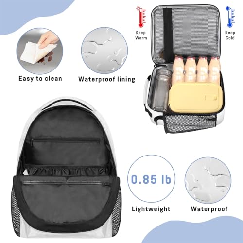 Customized Backpack with Lunch Box White Travel Backpack Bookbag & Lunch Bag Personalized Insulated Lunchbox Waterproof Daypack Laptop Backpack Freezable Lunch Bag 5