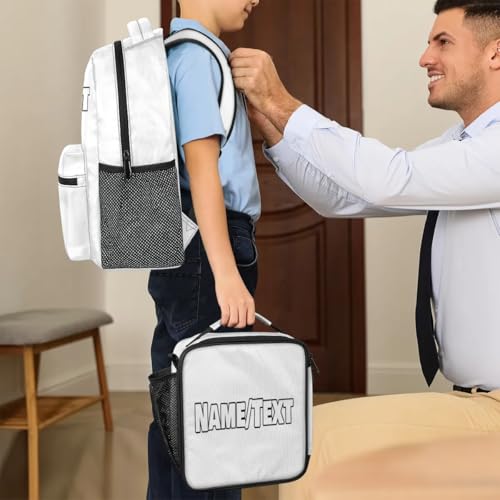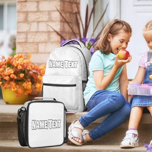 Customized Backpack with Lunch Box White Travel Backpack Bookbag & Lunch Bag Personalized Insulated Lunchbox Waterproof Daypack Laptop Backpack Freezable Lunch Bag 6
