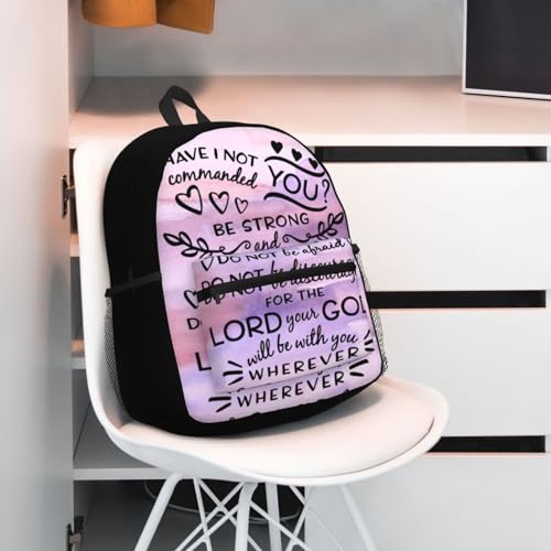 Joshua 1 9 Be Strong Bible Scripture Verse Casual Backpack – Lightweight Travel Daypack, Multi-Pocket Laptop Hiking Bag, Durable Polyester Pack For Outdoor Camping Cycling 5