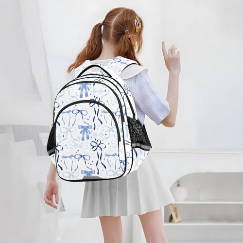 Cartoon Blue Ribbons Bow Backpack for Kids Elementary School Bag Boys Girls Bookbag Travel Backpack Daypack 4