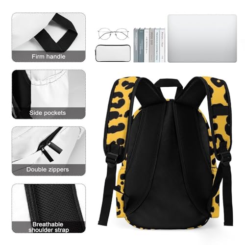 Casual Daypack Lightweight Travel Backpack Laptop Backpacks Hiking Backpack Fashion Computer Bag For Men & Women Animal Skin Cheetah Leopard Leather Print Yellow 7