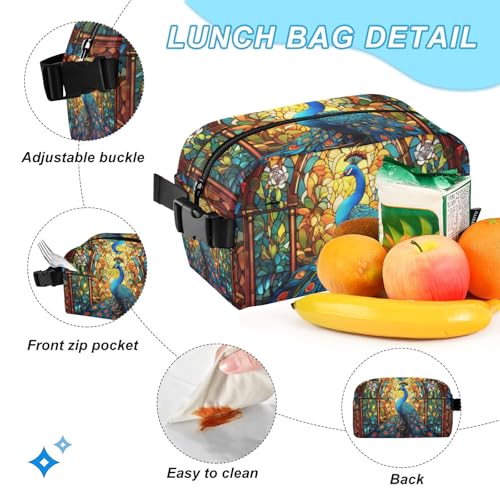 Backpack Peacock Stain Glass for School Girls Boys, Backpack for Women Men, Lightweight Bookbag with Lunch Box Travel Laptop Daypack 18.5” x 11.8” 4