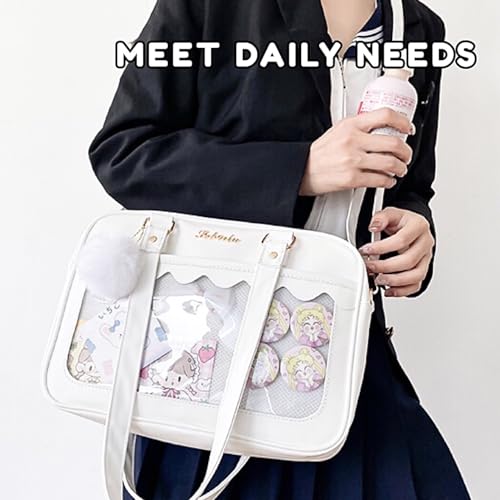 • Kawaii and Stylish: Stylish ita bag with a combination of small clear windows and large capacity. Great backapck for books or travel to show off your kawai pins and cute stuff without worrying about losing them. And the unique aesthetic crossbody bag makes you the coolest guy outside. *Note: An ita bag with clear display window & a cute hairball pendant Only. You can put some pins, key chains or photo in the clear area. Make your own style ita bag and no worry about be same with others.