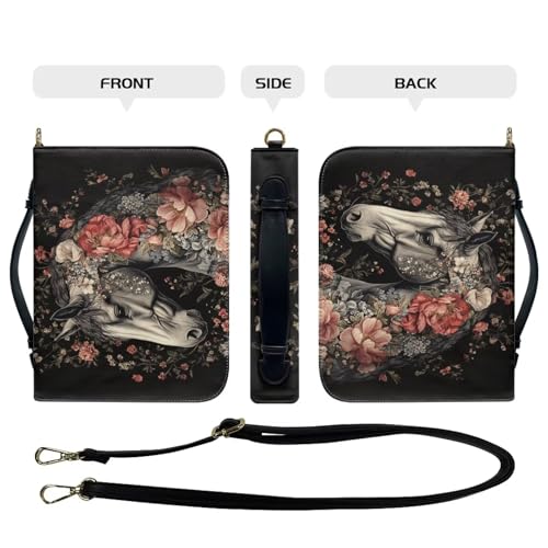 HOT ! Floral Horse Bible Cover Case for Girls PU Leather Bible Bag Journal Case with Handle Shoulder Strap Medium Size Crossbody Messenger Bags for Daily Use