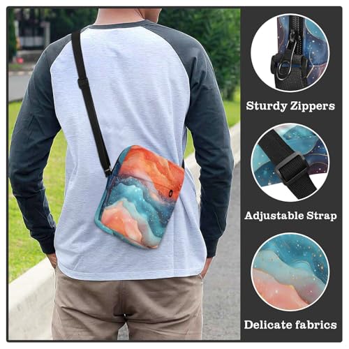 crossbody messenger bag mens crossbody bag small Cross Body Purse Adjustable Strap for business business- Glistening Peach Turquoise Red 1