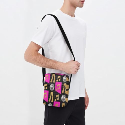 mens messenger bag shoulder bag men Purses Cross Body Bag Adjustable Strap for School School- Neon Music Glitter 2