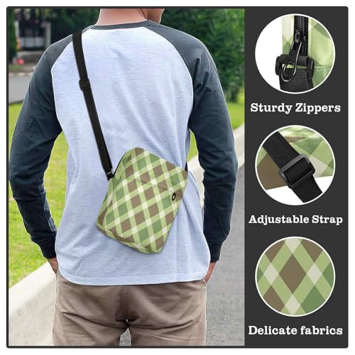 HOT ! small messenger bag for women mens crossbody Women's Purse Adjustable Strap for business business- Plaid Green Yellow White Brown