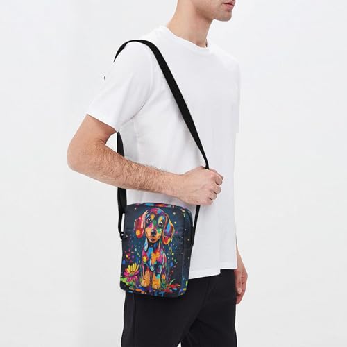 small messenger bag for men mens crossbody bag Purses Cross Body Bag Adjustable Strap for Travel Travel- Sweet Dachshund Dripping Paint 1