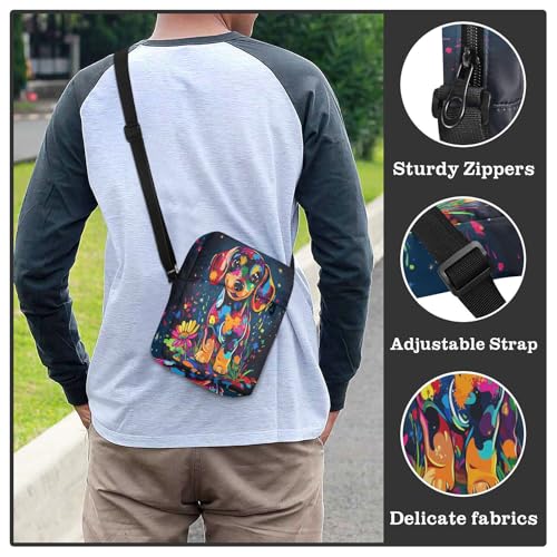 small messenger bag for men mens crossbody bag Purses Cross Body Bag Adjustable Strap for Travel Travel- Sweet Dachshund Dripping Paint 6