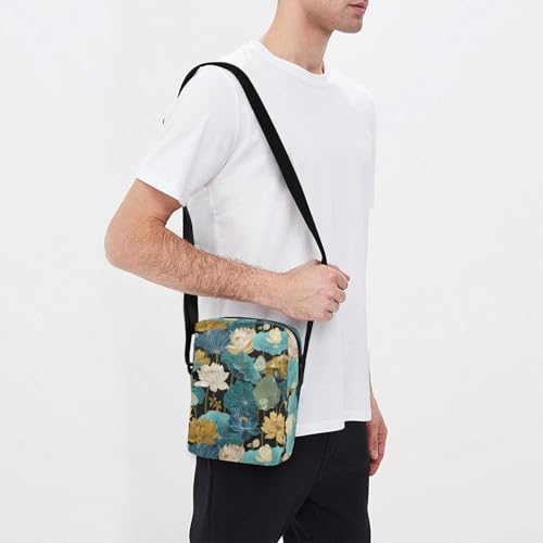 KLL Elegant Water-lilies Blue Retro messenger bag crossbody Vegan Leather cross body bag Casual Shoulder Handbags 1