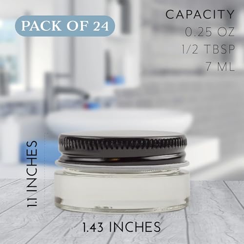 Cornucopia Brands 7-Milliliter Glass Lip Balm Jars (24-Pack).25-Ounce Thick-Walled Containers (7ml Clear with Black Metal Lids) 4