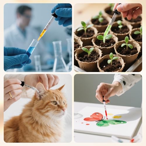 • Widely Used: the dropper can be used to transfer and measure almost all kinds of liquids and siutable for home use, DIY crafts,essential oils, ear medicine, science experiments, Medicine Art Laboratory Leb etc. Also can be used as a medicine dropper