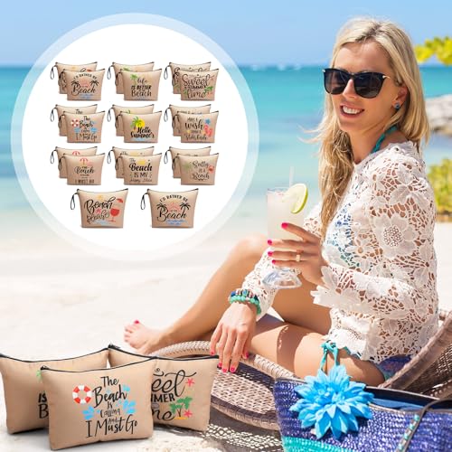 HOT ! 20 Pcs Bulk Beach Makeup Bags - Summer Beach Accessories Toiletry Cosmetic Pouch Zipper Bags, Cruise Travel Essentials Survival Kit Gifts Party Favors for Women Teens Clients Friends