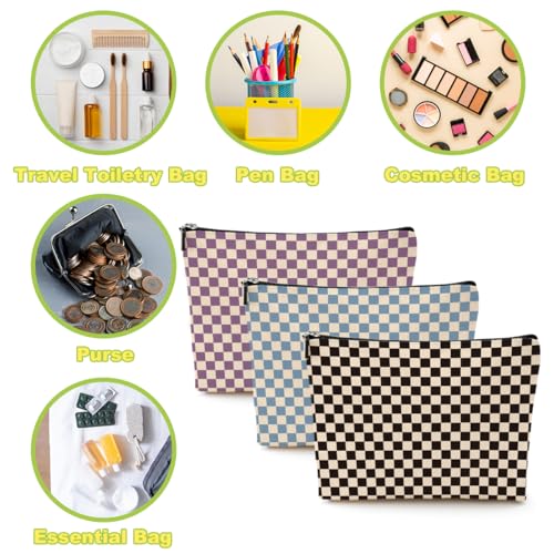 6 Pcs Checkered Makeup Bags Make up Bag Cosmetic Bags for Women Girls Sister Bridesmaid Friendship Christmas Birthday Travel Toiletry Bag Aesthetic Zipper Organizer Accessories, Cute Retro Plaid 3