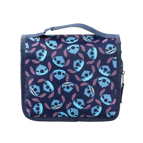 HOT ! Bioworld Disney Stitch Character Heads All-Over Print Blue 8.2" Folding Hanging Toiletry Kit