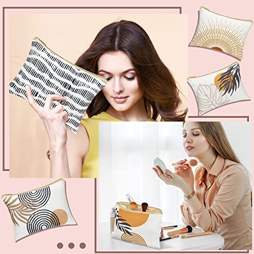 Pinkunn 6 Pcs Boho Makeup Bag Canvas Sunshine Cosmetic Pouch Zipper Cute Large Cosmetic Bag for Purse Preppy Makeup Organizer Travel Pouch for Women Girl, 6 Style 3
