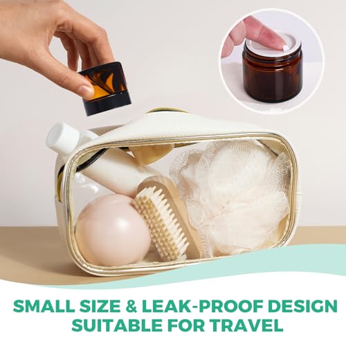 • Leak-Proof & Airtight Design: The black screw-top lids with inner liners create a dual-layer seal. They prevent leaks completely—even when jostled during travel or stored upside down—keeping creams and oils securely contained