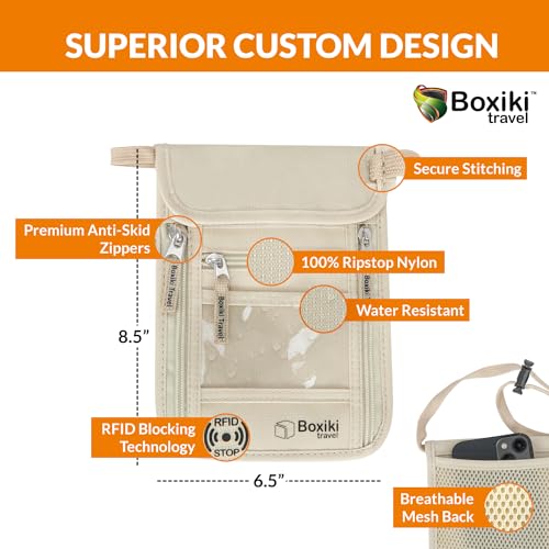 RFID Travel Neck Wallet - Beige | Sleek, Secure Passport Holder and Money Pouch with Adjustable Neck Strap for Men and Women to Keep Cash, Credit Cards & Travel Documents Safe 1