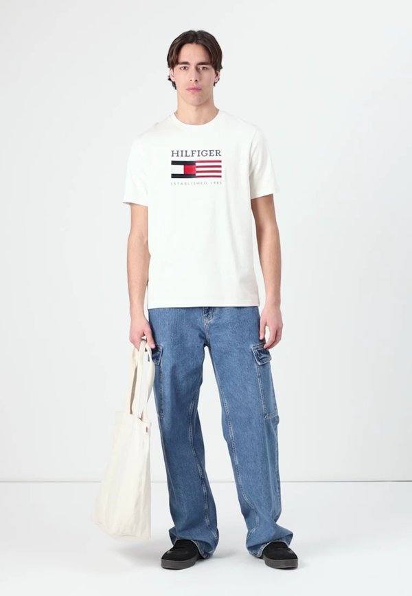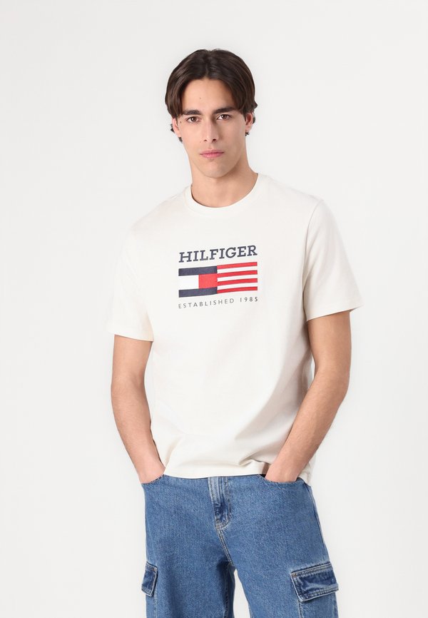 HOT ! AMERICANA MONOTYPE FLAG BOX TEE UNISEX - Print T-shirt - ivory petal