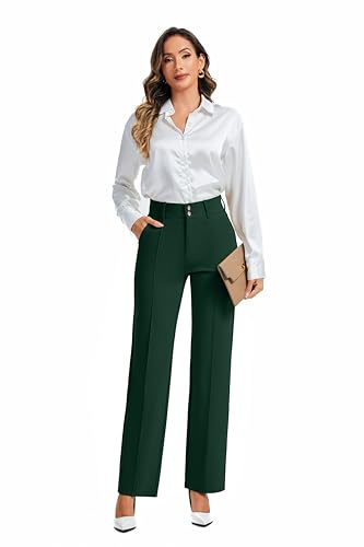 HOT ! FUNYYZO Dress Pants Women's Stretchy Straight Leg Button Slacks Trousers with Pockets Casual Pants