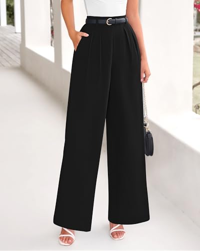 More information about BTFBM Women's Elegant Flowy Dress Pants Front Pleated High Waisted Casual Wide Leg Loose Palazzo Trousers with Pockets