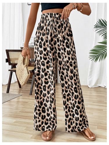 WDIRARA Women's Leopard Print Drawstring Waist Wide Leg Pants Loose Fit Palazzo Pants 6