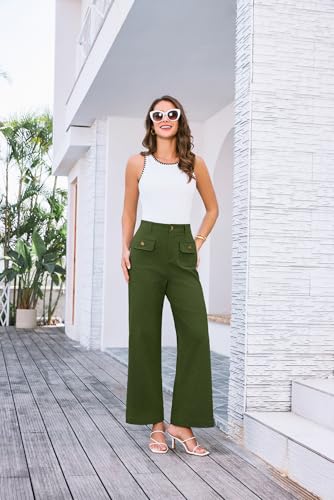 GRACE KARIN Women Wide Leg Pants High Waist Stretchy Pants Dressy Business Work Casual Trousers with Pockets 5