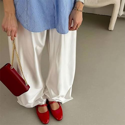 HOT ! WANLUOSUXWomen's Metal Shiny Pants Silk High Waisted Elastic Waistband Casual Drape Trousers