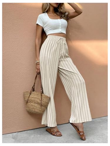 • Features: Striped pants for women, straight leg, high waist, adjustable drawstring waist, loose fit