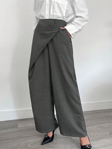 • Style:Casual / Details:Wrap / Details:Zipper / Color:Grey / Type:Straight Leg / Pattern Type:Plain / Waist Line:Natural / Length:Extra Long / Fit Type:Loose / Fabric:Non-Stretch / Material:Woven Fabric / Composition:97% Polyester / Composition:3% Elastane / Care Instructions:Machine wash or professional dry clean / Body:Unlined / Sheer:No