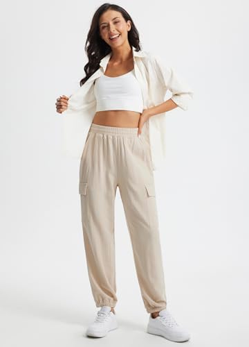 HOT ! Libin Womens Cargo Linen Pants High Waisted Summer Casual Beach Parachute Travel Trousers Lightweight Joggers with Pockets