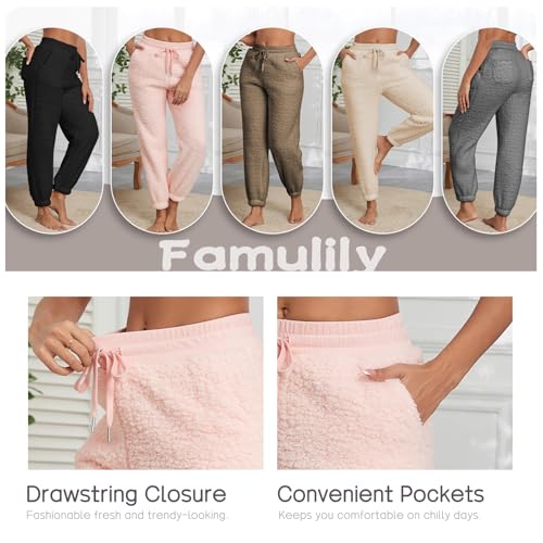 Famulily Womens Winter Sherpa Fleece Sweatpants Drawstring Waist Joggers Pants Thick Thermal Trousers with Pockets 1