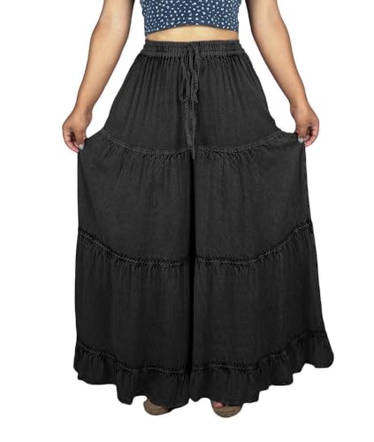 Agan Traders Women's 2025 Spring Soft Flowy Palazzo Wide Flared Belly Bottom High Waistband Drawstring Ruffle Pant Trouser 7