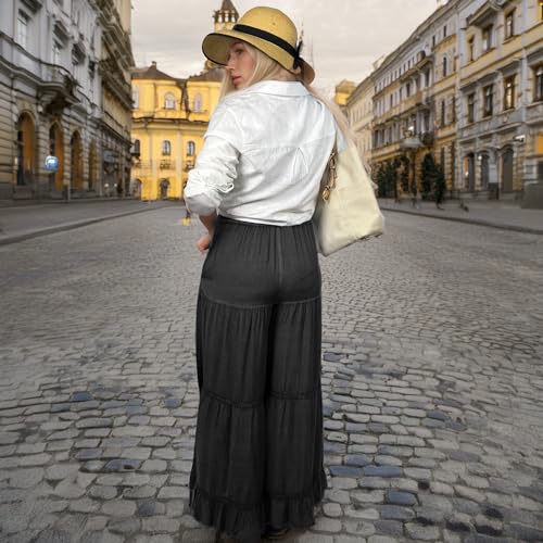 HOT ! Agan Traders Women's 2025 Spring Soft Flowy Palazzo Wide Flared Belly Bottom High Waistband Drawstring Ruffle Pant Trouser