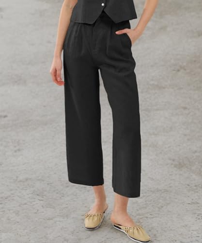 HOT ! Amazhiyu Women's Linen Ankle Pants Pleated Front Wide Leg Straight Cropped Trouser