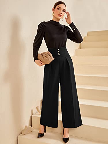 HOT ! SweatyRocks Women's Elegant High Waist Pleated Pants Button Front Wide Leg Trouser Pants