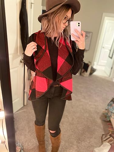 Unidear Womens Buffalo Plaid Vest Casual Lapel Open Front Sleeveless Cardigan Jacket Coat with Pockets 1