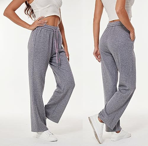 HOT ! heipeiwa Women's Knit Cashmere Wool Blend Rib Wide Leg Flowy Fall Winter Thermal Sweater Pants Trouser