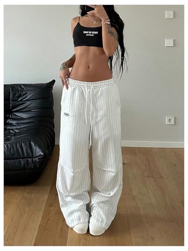 HOT ! GORGLITTER Women's Y2k Wide Leg Baggy Track Pants Striped Elastic Waisted Drawstring Trousers