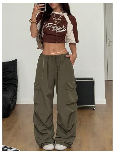 HOT ! GORGLITTER Women's Y2k Flap Pocket Baggy Cargo Pants Oversized Drawstring Waist Joggers