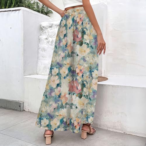 More information about Floral Wide Leg Pants Women Elastic Waist Summer Beach Pant Side Slit Flowy Boho Trouser Tropical Lounge Baggy Jogger