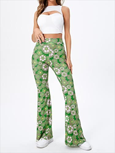 WDIRARA Women's Elastic High Waist Allover Print Floral Bell Bottom Flare Leg Long Pants 6