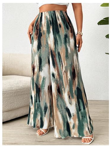 HOT ! GORGLITTER Women's Plus Size Tie Dye Pleated Palazzo Pants High Waisted Wide Leg Loose Casual Flowy Pants